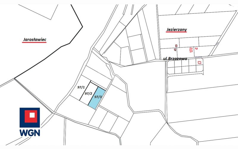 Nieruchomość gruntowa w kształcie prostokąta o wymiarach ok.34,10 m na ok.88,10 m. Teren jest płaski, częściowo zakrzewiony z kilkoma drzewami (krzewy oraz drzewa zostaną usunięte do sprzedaży nieruchomości). Dojazd do działki drogą wewnętrzną szerokości 6m (udział w drodze 1/3) z drogi gminnej gruntowej - przedłużenie ul.Brzozowej. Od północy działka graniczy z lasem za który jest już miejscowość letniskowa Jarosławiec. Odległość do jeziora Wicko w Jezierzanach to ok.1 km, do plaży w Jarosławcu to ok.2 km. Na danym obszarze brak jest MPZP. Przyłącze wodociągowe oraz energetyczne w ulicy Brzozowej ok.300 m od granicy działki.